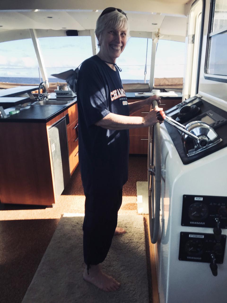 Alone on night watch for the first time, Linda looked out into the darkness and down at all the instruments and felt a zap of terror. She wondered what in the world she was doing out there on the ocean - and if she might be crazy. But after making it through her three-hour watch, Linda did not doubt herself again and even learned to love night watches. The planets and constellations became like familiar friends to greet her at the beginning of each watch and to keep her company as they kept her orientation.