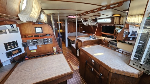 At 44.4 feet overall length and 24,000 pounds of displacement, Coho II is built for crossing oceans with speed, a gentle motion, and excellent performance in both strong winds and light airs.