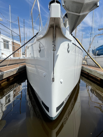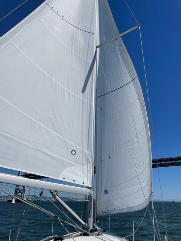 Polaris is a Beneteau Oceanis 30.1 in our Berkeley Silver Plus Fleet. With a striking, modern profile featuring a hard-chine hull and slender bow, Polaris is designed for agile handling and spirited performance on all points of sail. Her twin rudders provide exceptional control and a responsive helm feel, making her a delight to sail short-handed or with a full crew. She features a convenient in-mast furling mainsail and a dedicated helm pedestal. This setup allows you to easily set, reef, and put away the sail from the safety of the cockpit, while the pedestal offers an additional secure platform for adjustments near the mast—a significant advantage when managing the Bay's notoriously shifty breezes. A spacious cockpit accommodates up to 6 sailors comfortably on day sails.