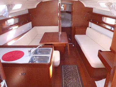 The contemporary interior is well-appointed for liveaboard comfort. Two cabins, a spacious salon, microwave, and shower in the head and make her an excellent choice for multi-day charters.